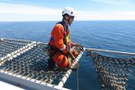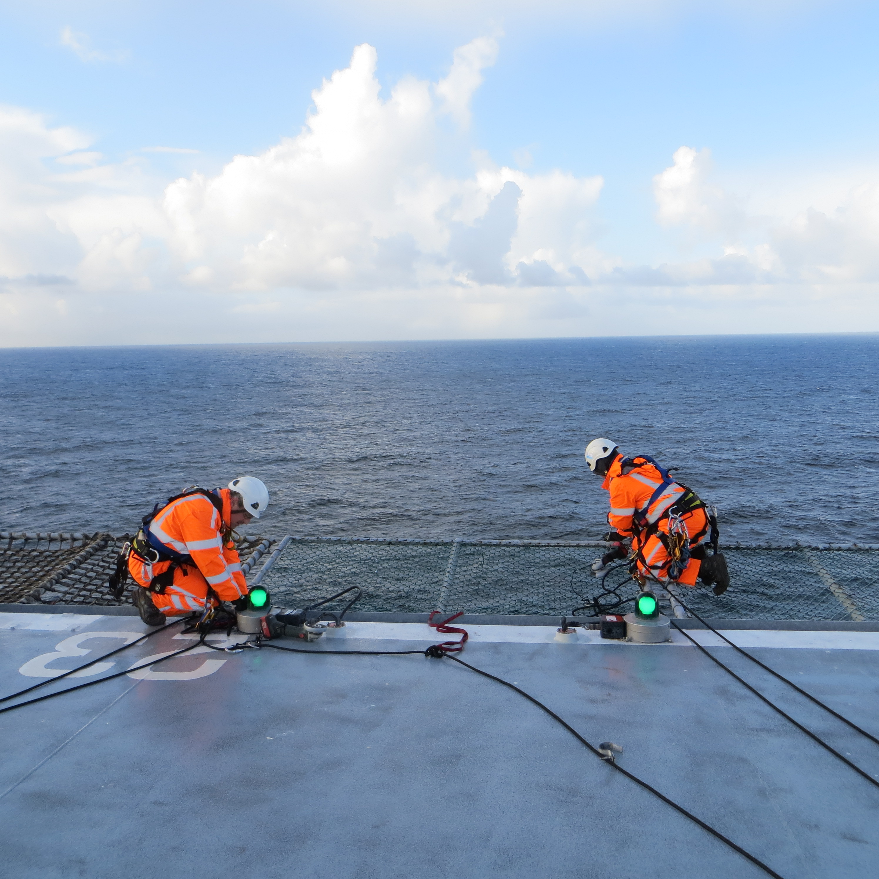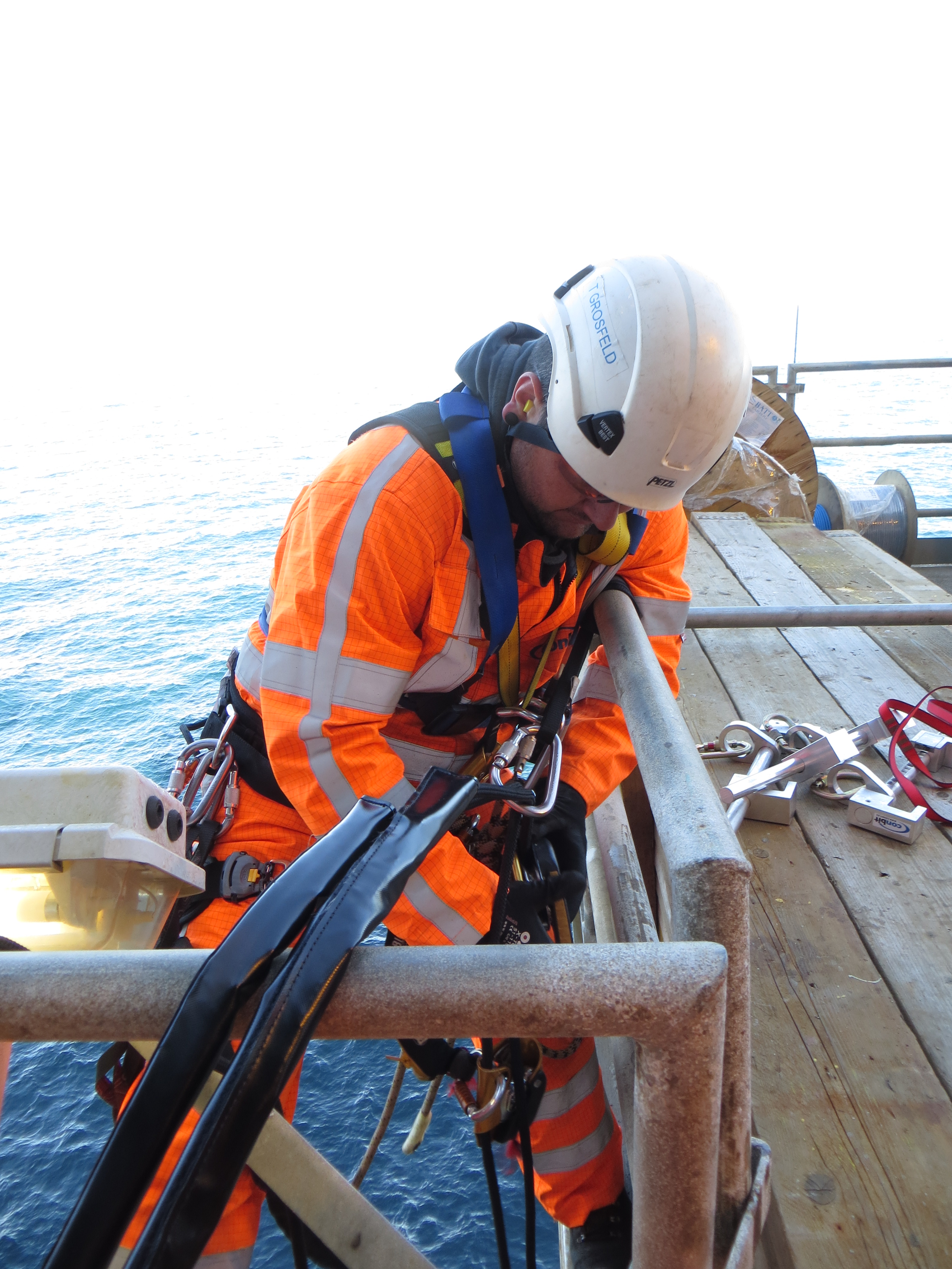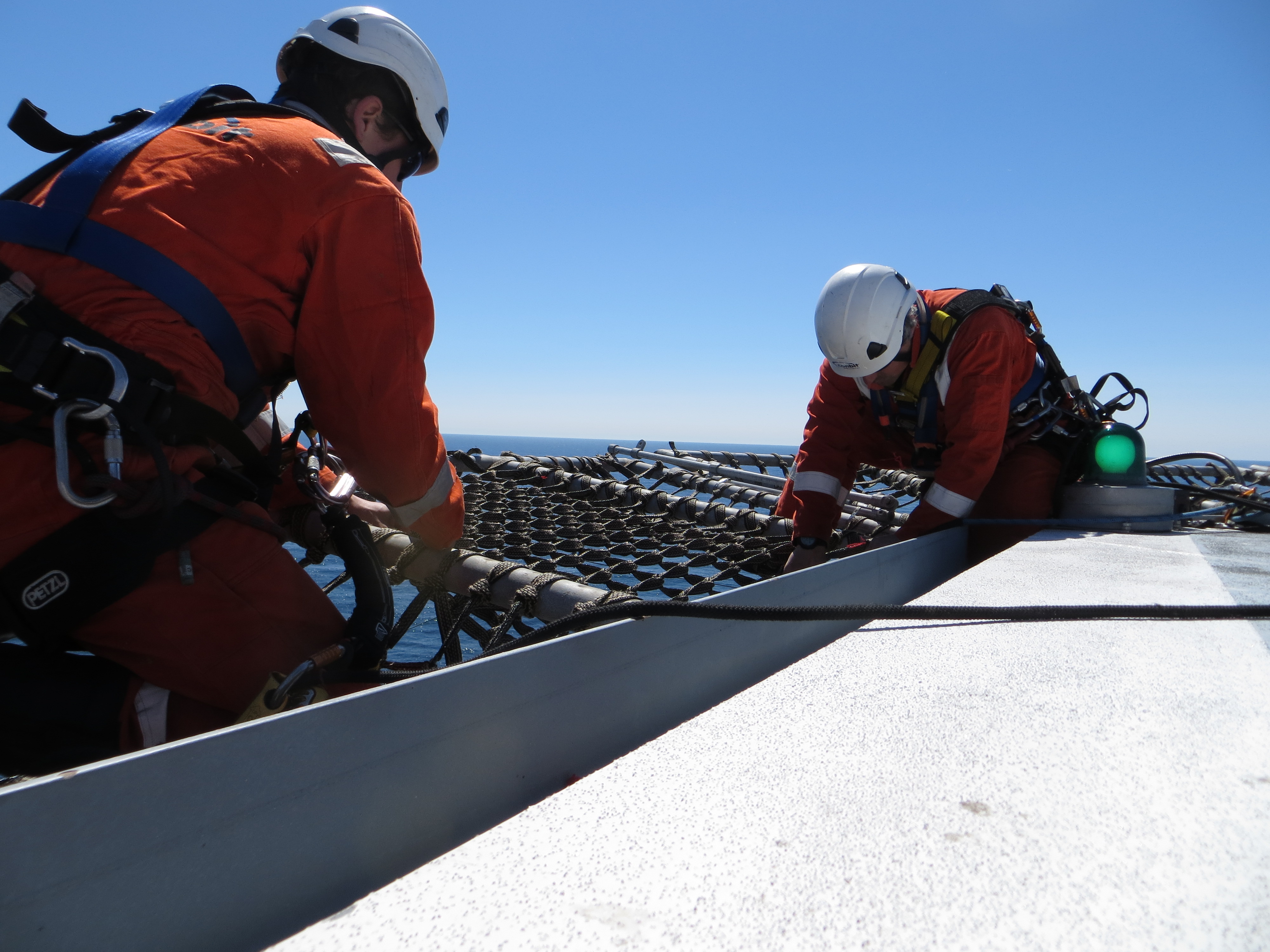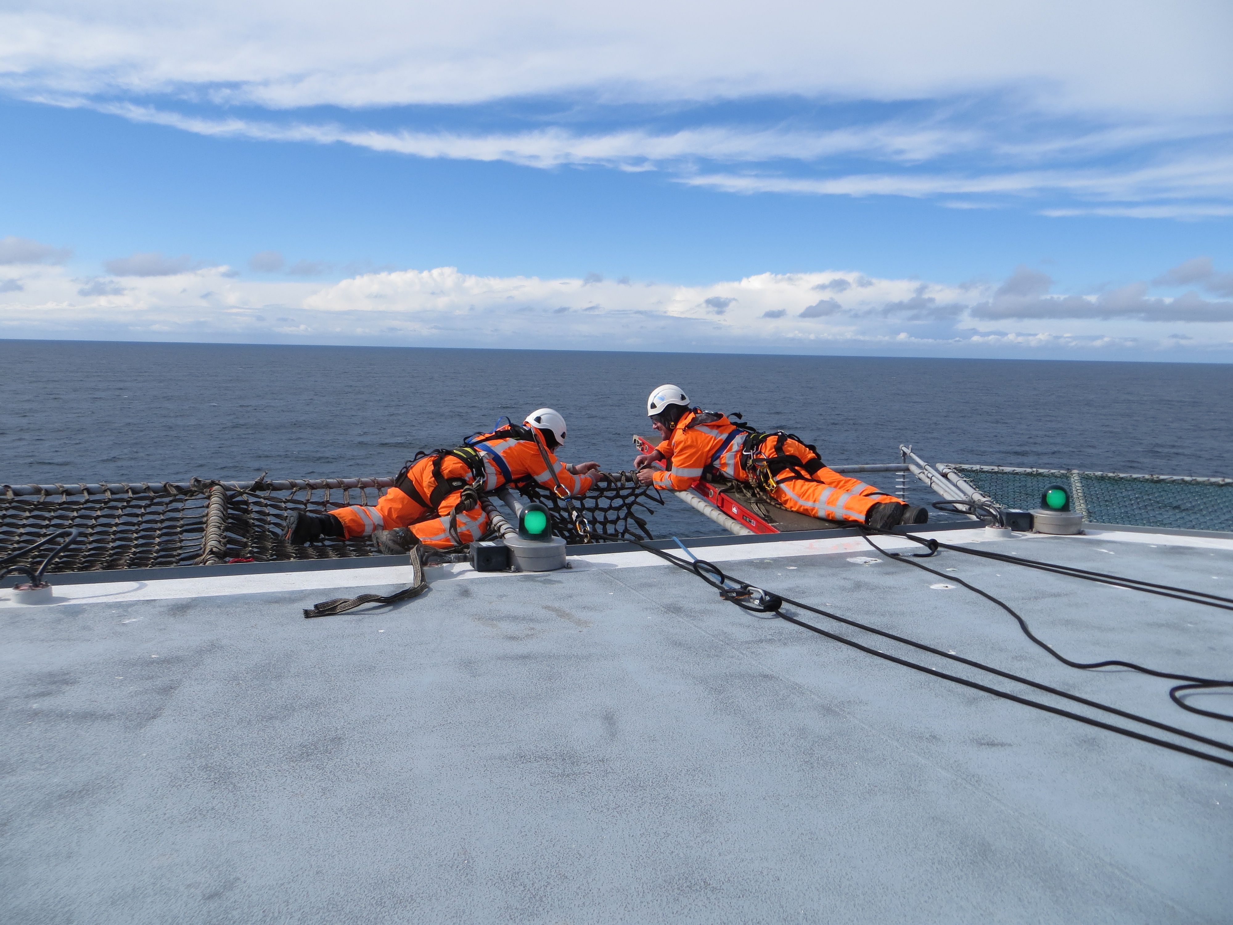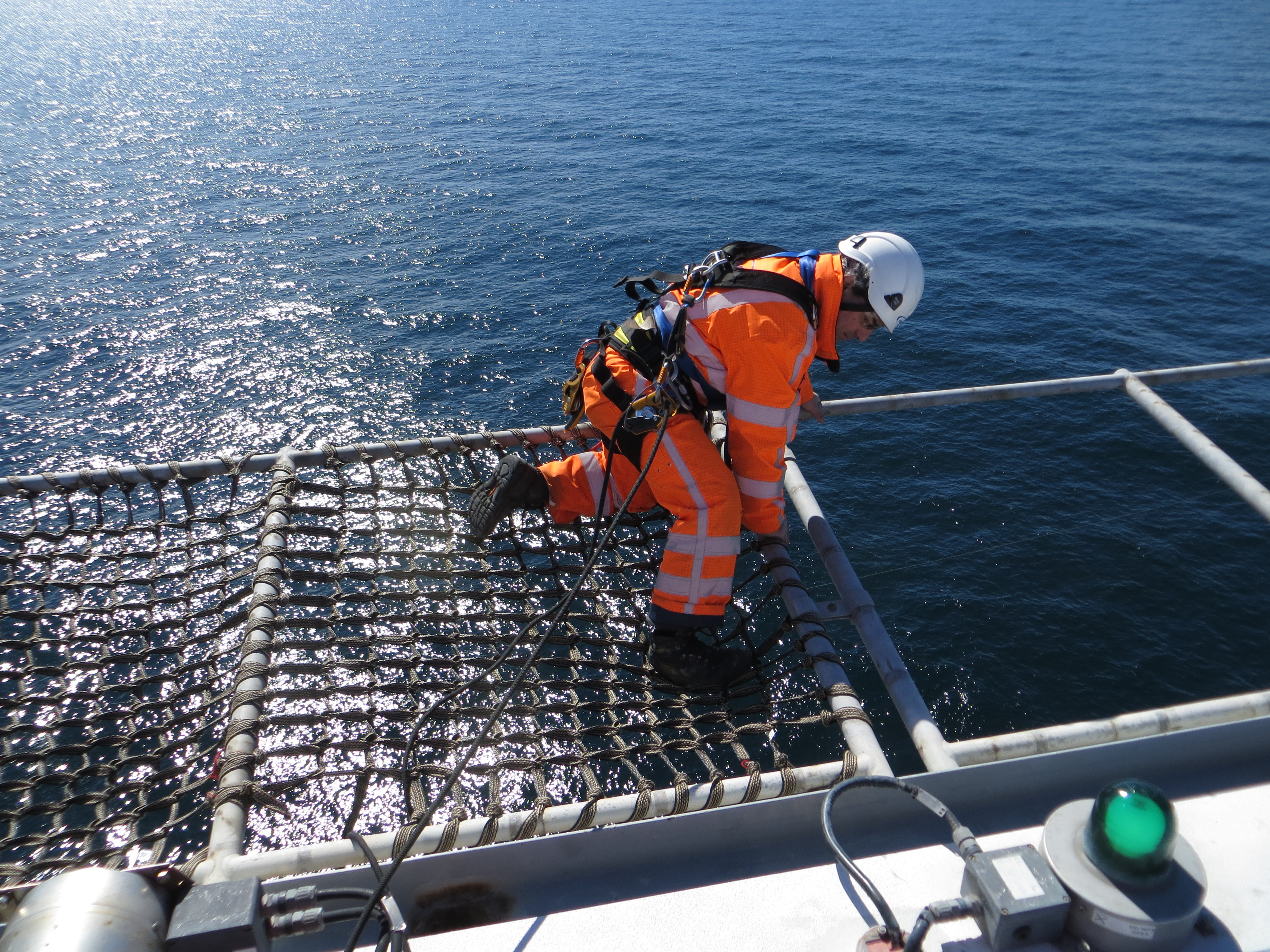 As part of the certification process, Dana requested Conbit to supply and install new helideck perimeter netting on the Hanze platform. During the installation, the crew had to be able to demobilise within 20 minutes. This would allow helicopter operations to continue. Rope access techniques were very beneficial in this context.
