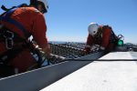 The crew flew offshore on Monday 20 June and finished the work 10 days later. This short installation time was achieved despite two days of bad weather during which the work was stopped. Such an achievement is only possible when the client and contractor work together well. During the preparation phase, several meetings were held to ensure that all the parties were clear about the activities. When the crew arrived on the platform, all the tools and the netting were available in the right location. After the last JSA meeting, the Conbit team were able to start on the first panels.