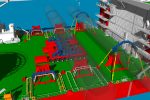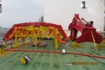 Since the saddles, like everything else on the Zaratan, are big objects, they need to be stored during transit back to shore. Conbit was asked to provide a kind of saddle rack. This rack is positioned on deck close to the grillages, so the saddles can be placed on them using the onboard auxiliary crane.