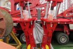 As indicated during the proposal period, Conbit recommended using friction to hold the monopiles in their grillages. Each monopile would be kept in position using grillages with two saddles on top. Initially, the friction was obtained by a sort of lashings. Four of these lashings were used to pull down one saddle, which lay on top of the monopile. By connecting two lashings on each side of the monopile and pulling them together, it should be possible to manually get the required load of 100 metric tonnes in each lashing. This system later proved unable to fulfil the requirements and a different system was implemented. The improved system involved the same lashings, but a hydraulic tensioning system would generate the load.