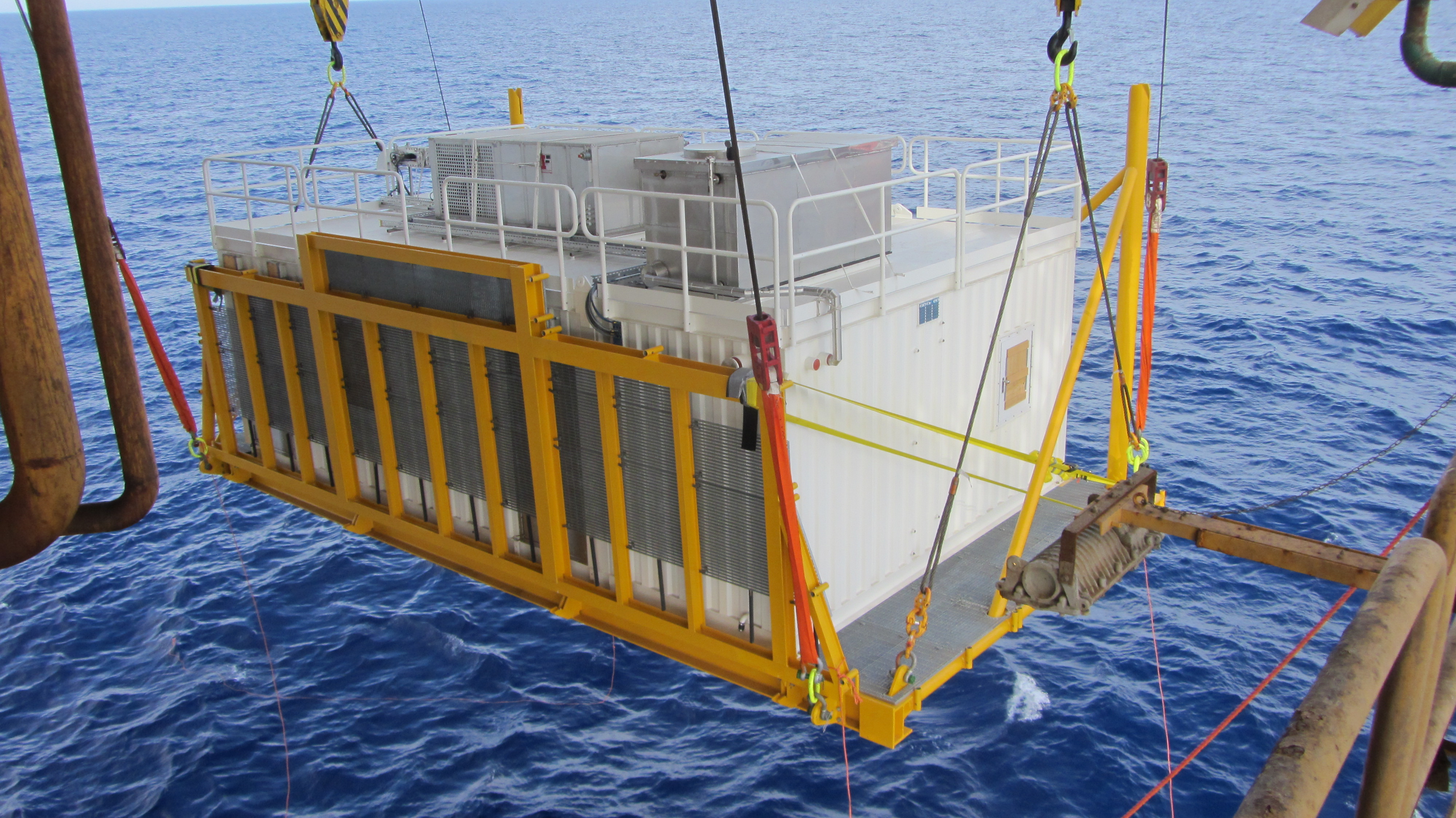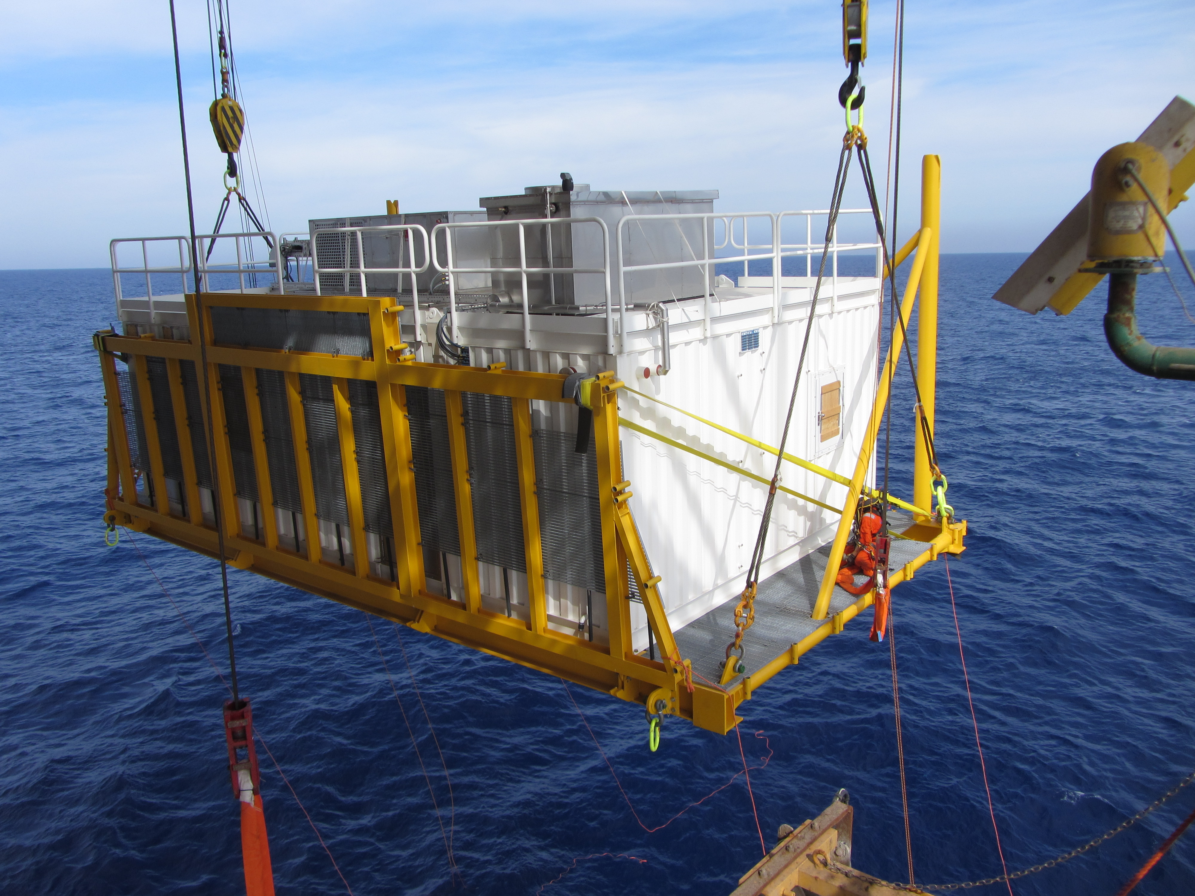 The required speed is precisely the reason why Conbit uses very fast lift winches. These can lift at a rate of 36 metres a minute with a capacity of 15 metric tonnes. For this project, two of these winches were deployed. The winches are operated by a diesel hydraulic powerpack, making the lifting configuration independent from the offshore platform utilities.