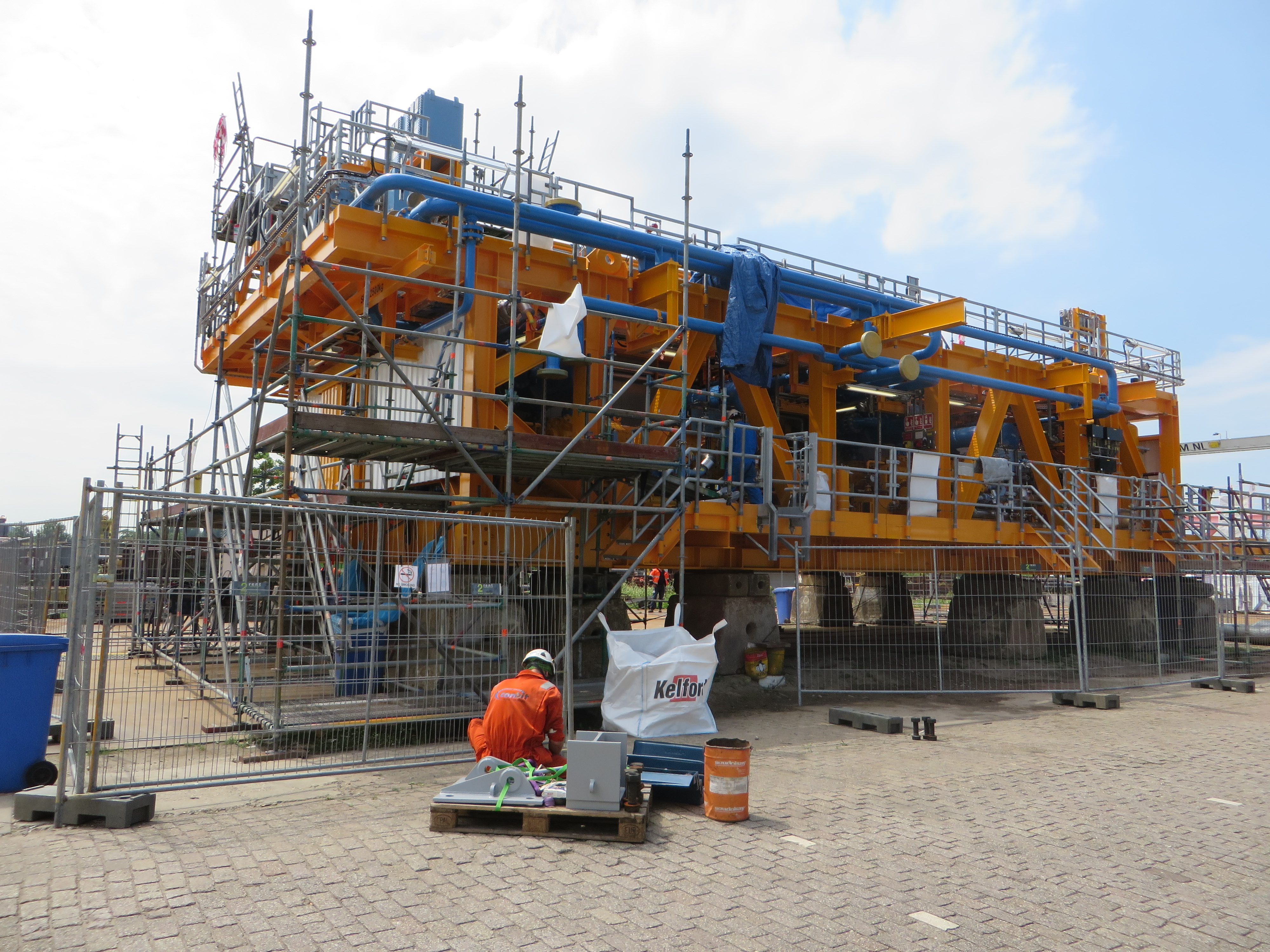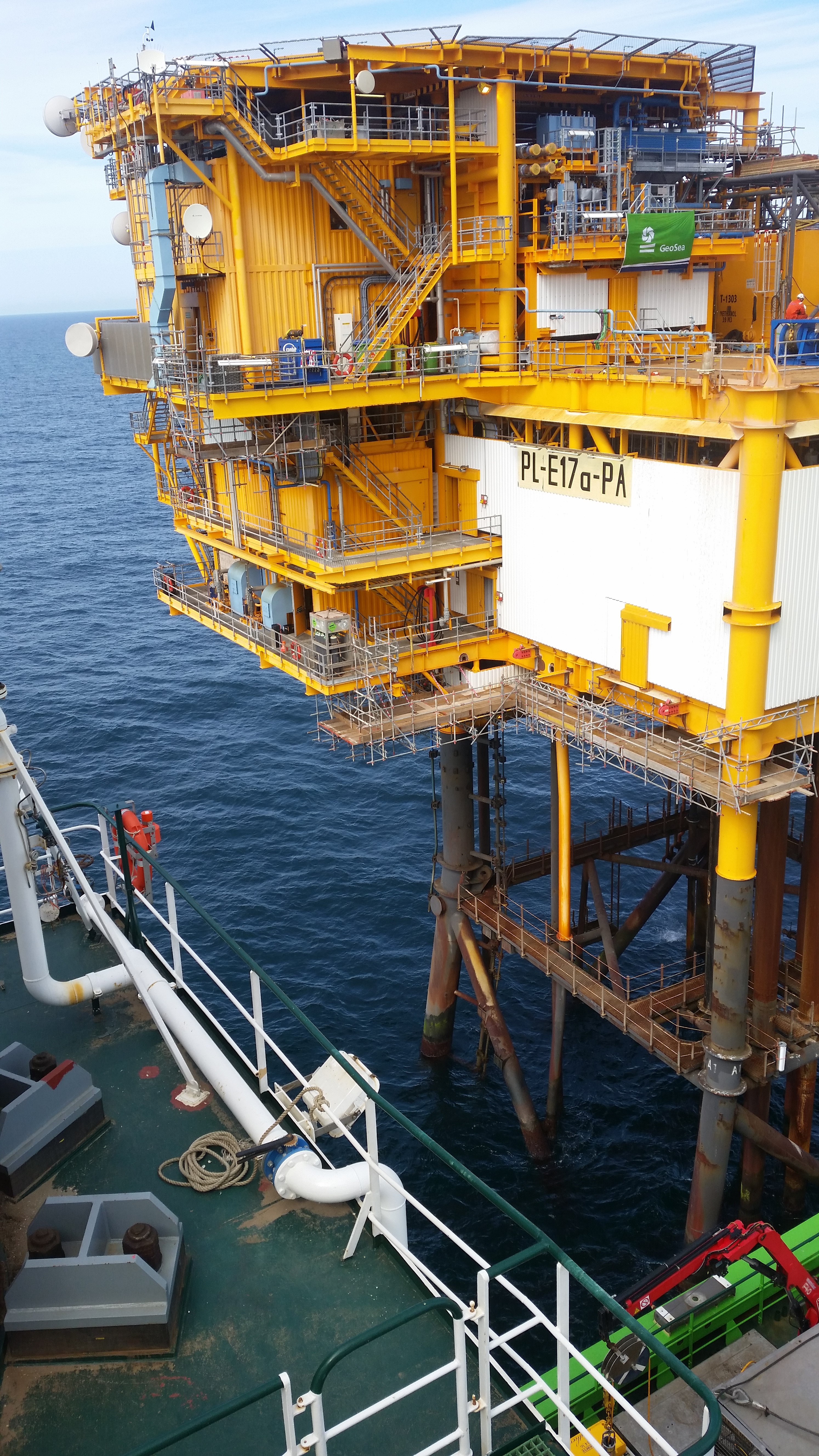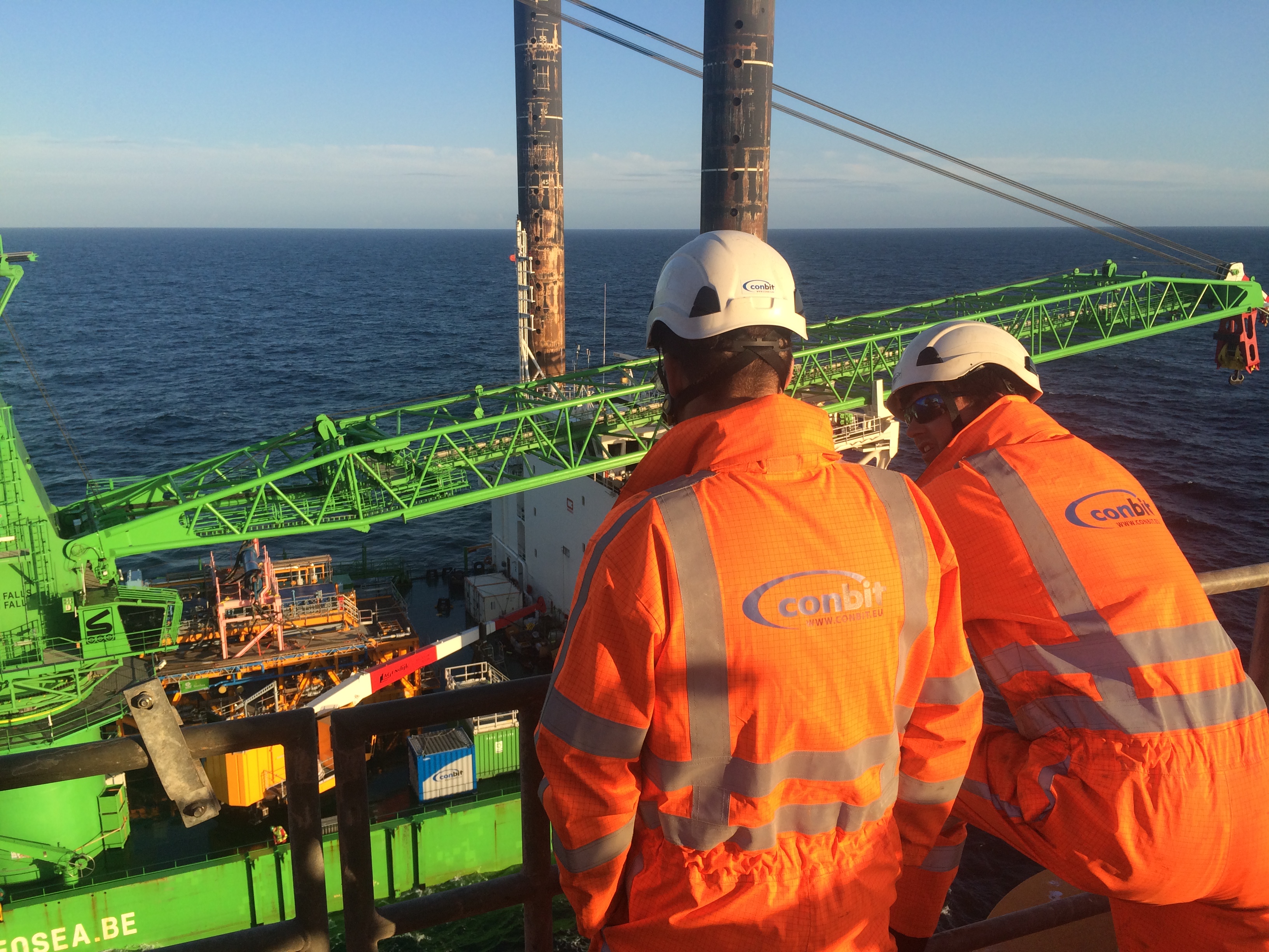 Conbit prepared the engineering and arranged the manpower and equipment for the operation. Four Conbit employees travelled with the Neptune from Antwerp to the E17a-A. Two people flew by helicopter to the E17a-A to make some final preparations. All the required competencies were on on board, including construction manager, project manager, structural engineer and riggers.